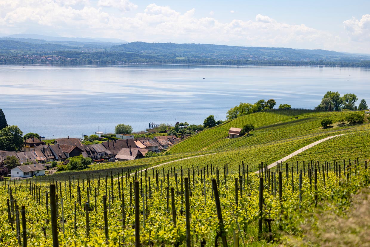 Ein Berg, aufgeteilt zwischen zwei Kantonen, gelegen im Land der drei Seen. Die Rebberge am Mont Vully machen mit ihren 160 Hektar zwar gerade einmal etwas mehr als ein Prozent der Schweizer Rebfläche aus, das Renommee dieser kleinen helvetischen Weinregion strahlt jedoch weit über die Winzerdörfer am Murtensee hinaus. Dafür verantwortlich sind innovative Winzer, die an einem Strang ziehen, um ihre Region gemeinsam weiterzubringen.